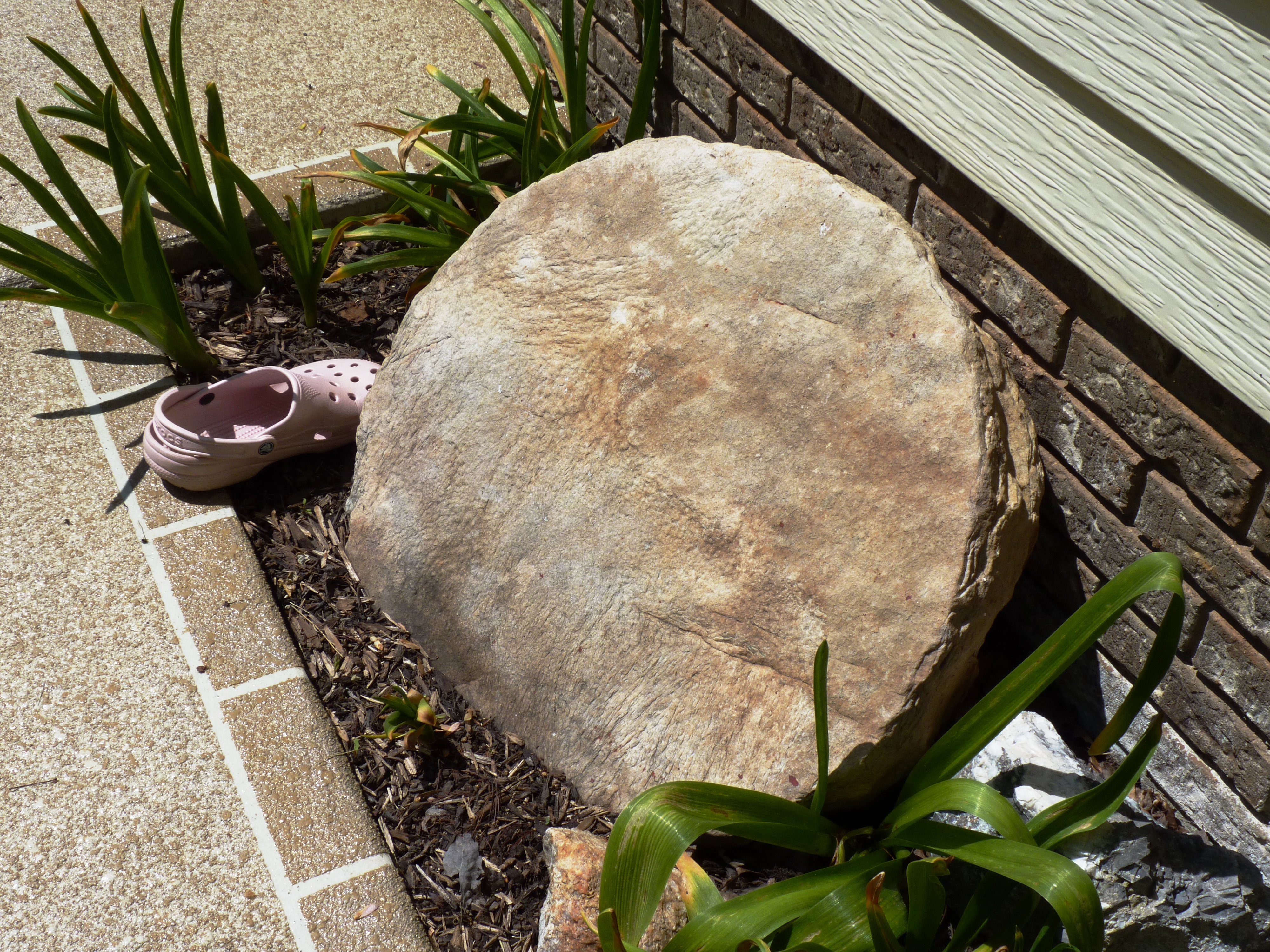 Stepping stone from home place of Thomas Croyle (photos provided by the family of Wallace Croyle - Thanks Debbie and Lois!). You can see by the shoe beside it in some of the pictures just how large the stone really is.